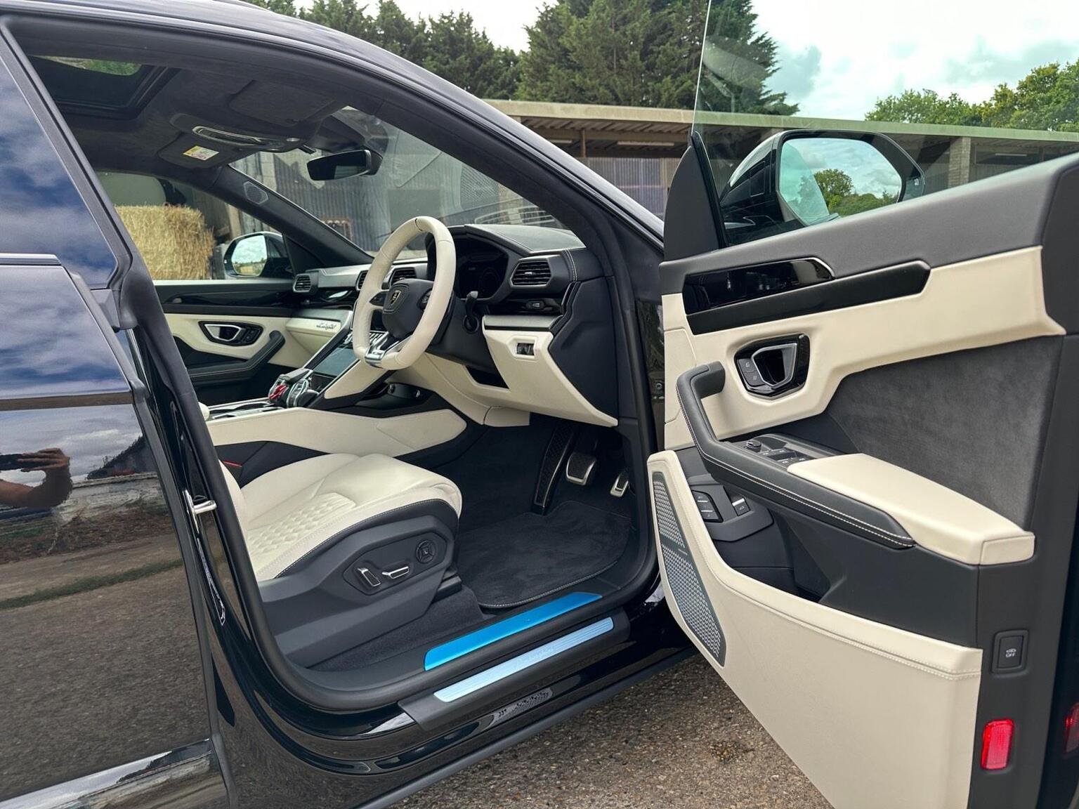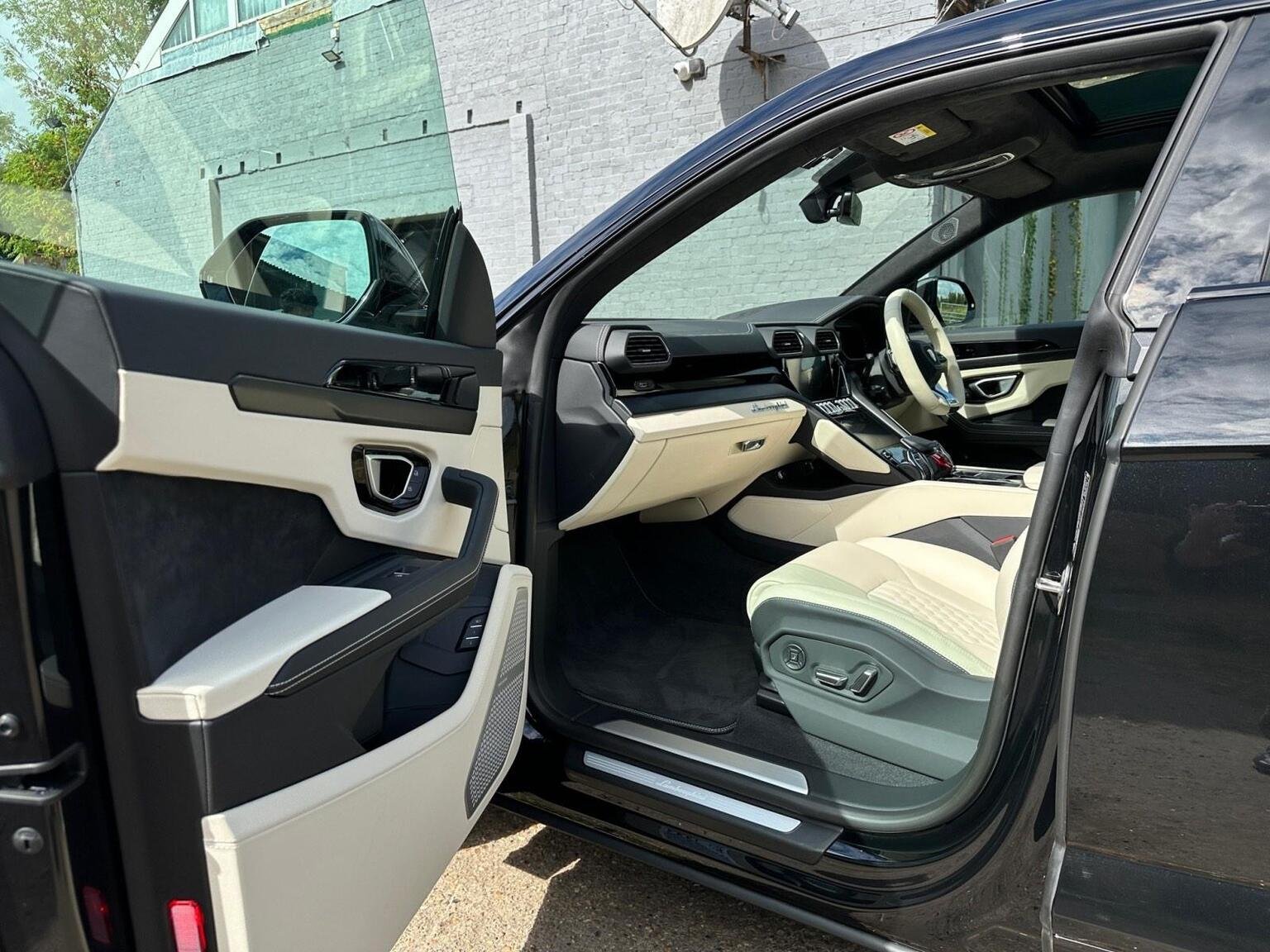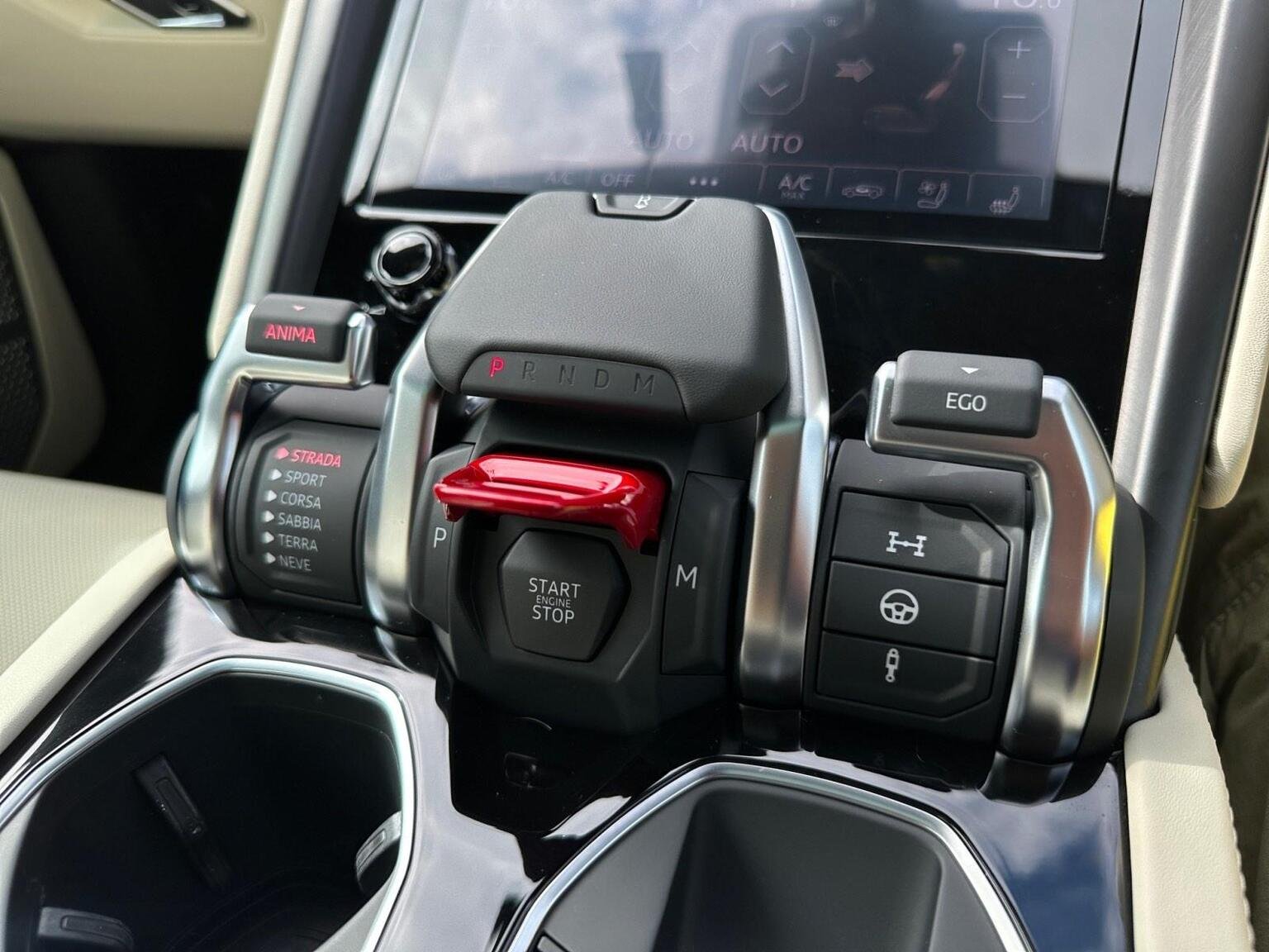 Akrapovic Racing Exhaust, Bang and Olufsen Advanced 3D Audio System, Electric Panorama Roof, 23in Alloy Wheels - Taigete Shiny Black Rims, Lamborghini ANIMA with Off-Road Modes, Lamborghini Eye, Parking Assistant Package with Remote Park Assist, Vehicle Tracking System - VTS, Black Roof Rails, Brake Calipers - Black, Embroidered Logo on Headrest, Style Package in Body Colour with Front Plastic Splitter - Ad Personam, Floor Mats with Leather Piping and Double Stitching, Front and Rear Seats Heated, Full Electric Front Seats with Ventilation and Massage, Optional Stitching on Steering Wheel, Multi Function Heated Steering Wheel in Smooth Leather, Bonnet Air Vents in Shiny Black, Sofisticato Leather Bicolour with Performante Trim - Nero Ade-Bianco Leda, Rear Lamborghini Logo in High Gloss Black - Ad Personam, Black Anodized Treatment on Aluminium Inserts, Privacy Glass - Acoustic and Double Glazing